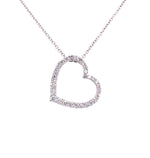 A beautiful 14K white gold diamond heart necklace with a standard 18" length 14K white gold chain.