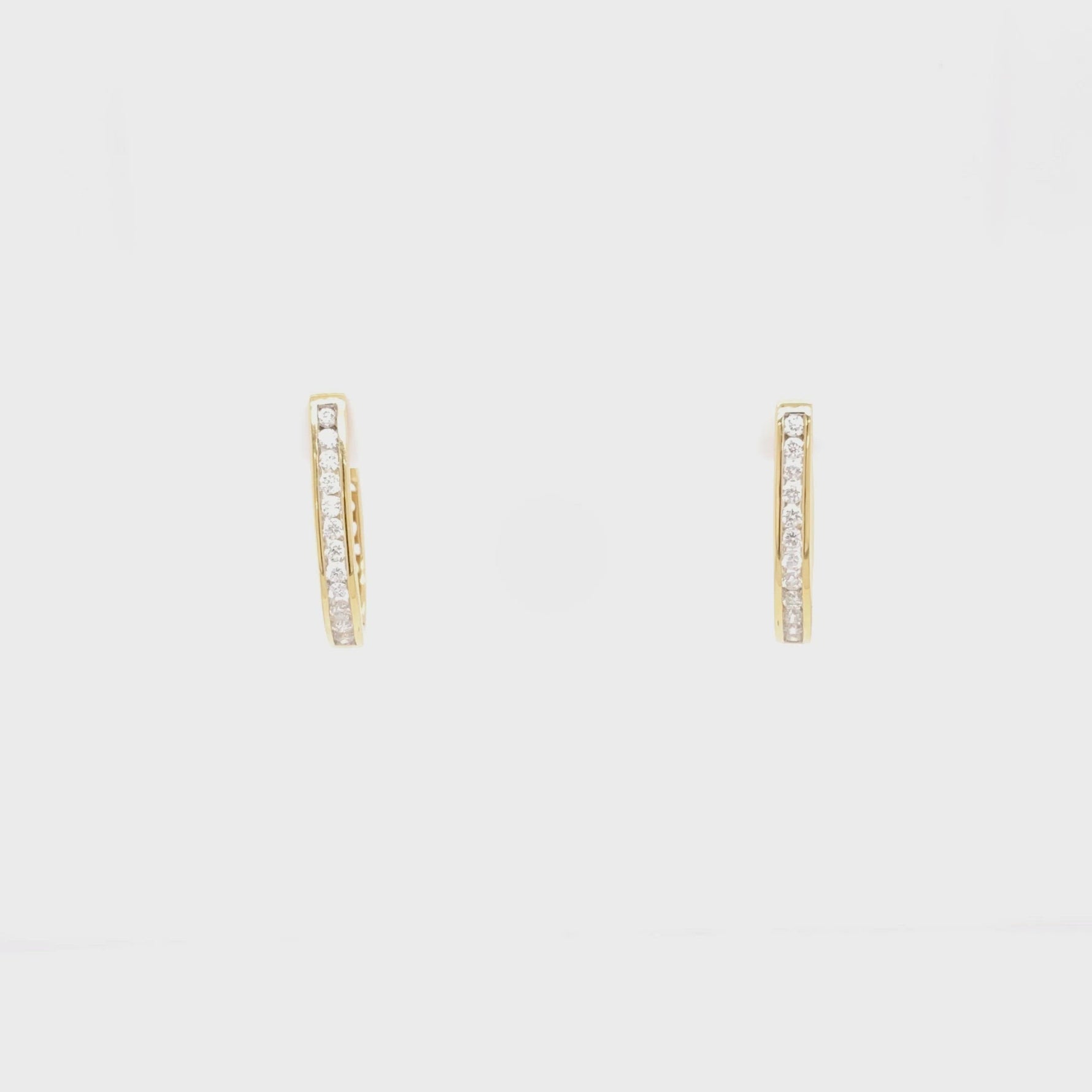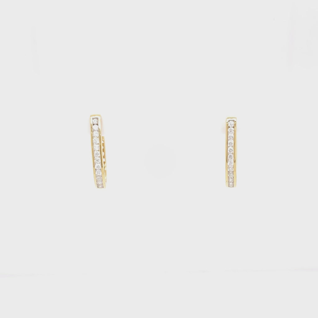 A pair of beautiful diamond pave inside/outside hoop earrings set in 14k yellow gold.
