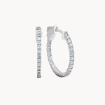 Make a grand entrance with this chic pair of lab-grown diamond round hoops! Exquisitely crafted in rhodium plated sterling silver with a highly polished smooth finish. The hoops feature an inside out design prong set with round brilliant cut lab-grown diamonds, nicely secured with comfortable hinged snapbacks.