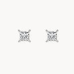A pair of beautiful 14K diamond stud earrings half bezel set.