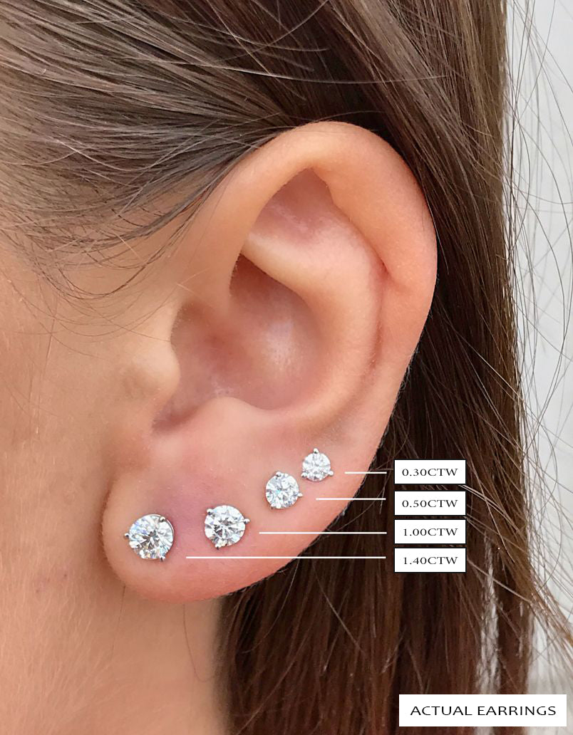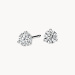 A pair of beautiful 14K lab created diamond stud earrings in a three prong martini setting with push styled backings.