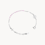 This rosary bracelet is a classic and representative religious symbol converted now into a religious bracelet for children The round medallion features an illustration of an angel and Mother Mary on the other side with a cross on a crystal chain.