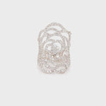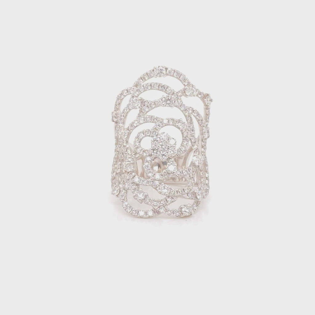 A beautiful 18K gold diamond ring in an open flower motif.