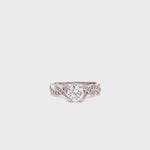 This modern ring features a natural Canadian diamond set on a twisted diamond accented band. Handcrafted in 14K this ring is the perfect choice.
