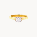 This classic solitaire ring features a single natural diamond set on a plain band. Handcrafted in 18K this ring is the perfect choice.