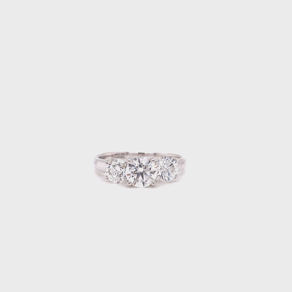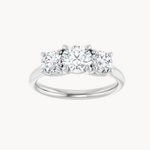This classic three stone ring features three natural Canadian diamonds set on a plain band. Handcrafted in 18K this ring is the perfect choice.