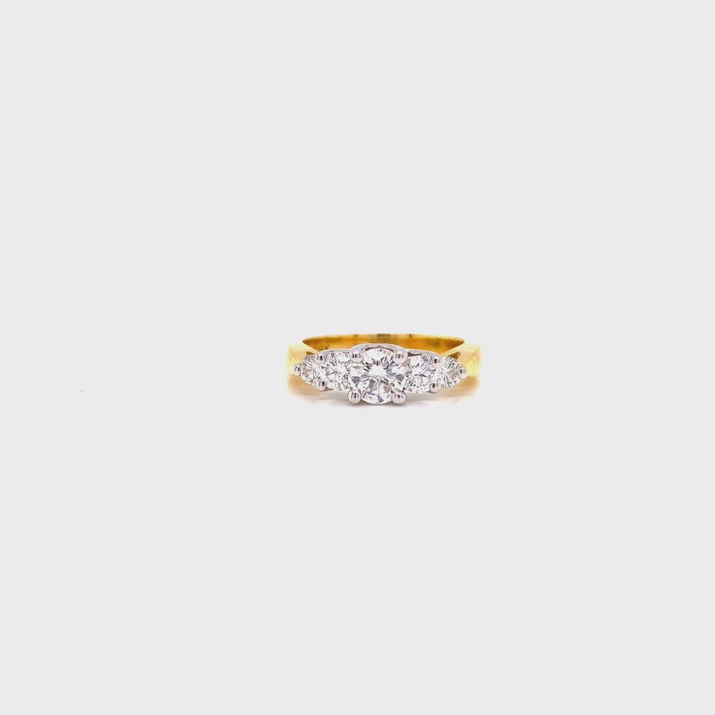 This classic five stone ring features five natural diamonds set on a plain band. Handcrafted in 18K this ring is the perfect choice.