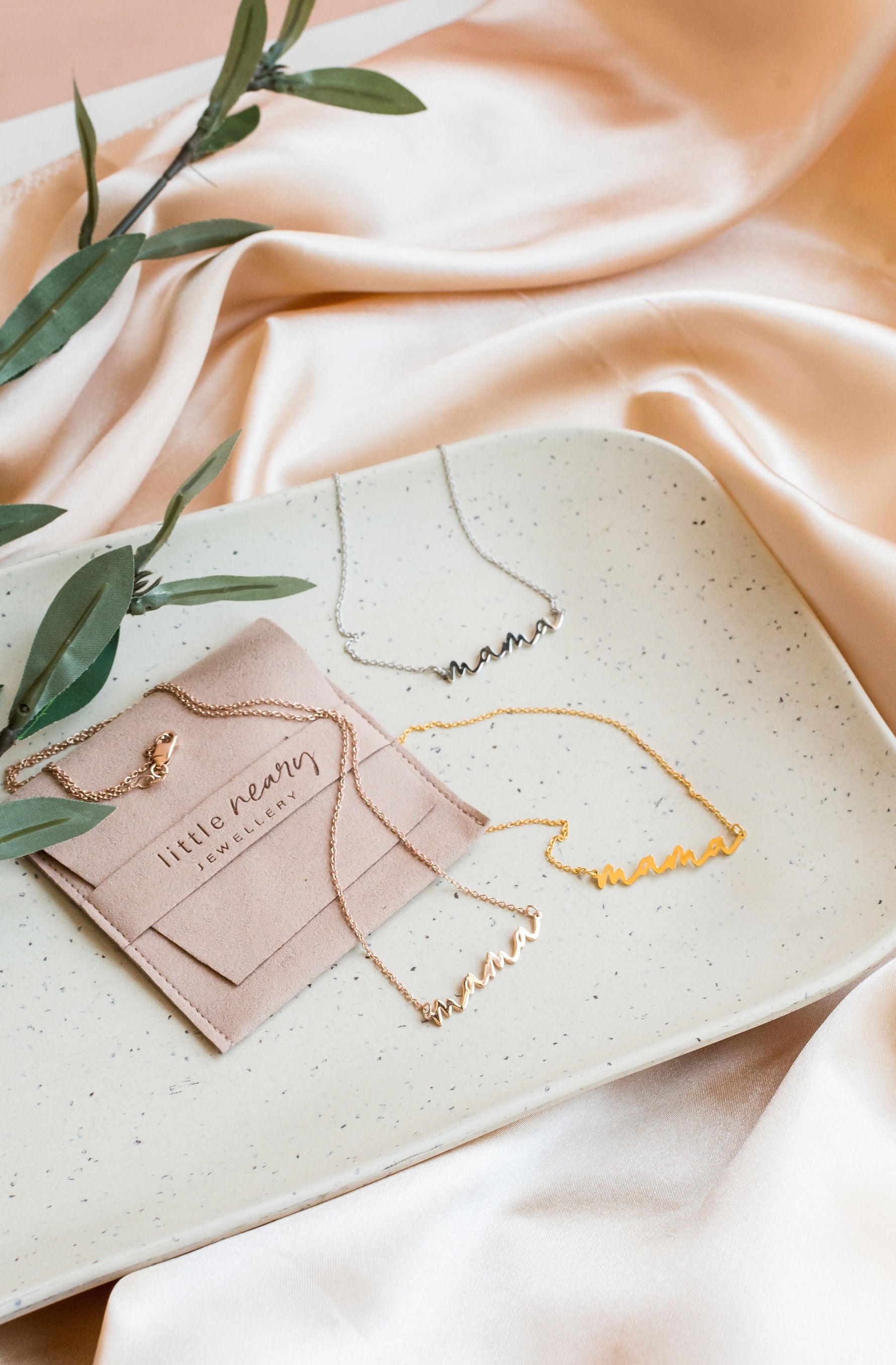 Mark the role of a lifetime with our beautiful Mama Necklace.  Handcrafted in sterling silver or solid gold, this classic is available in sterling silver, gold vermeil, rose gold vermeil.